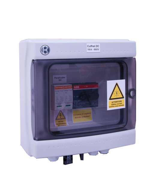 Assurez la protection de votre installation avec ce coffret. Coffret aux normes Francaises et obligatoire en France. Ce coffret vous permet d'assurer une déconnexion entre l'onduleur et les panneaux solaires et d'assurer la maintenance.